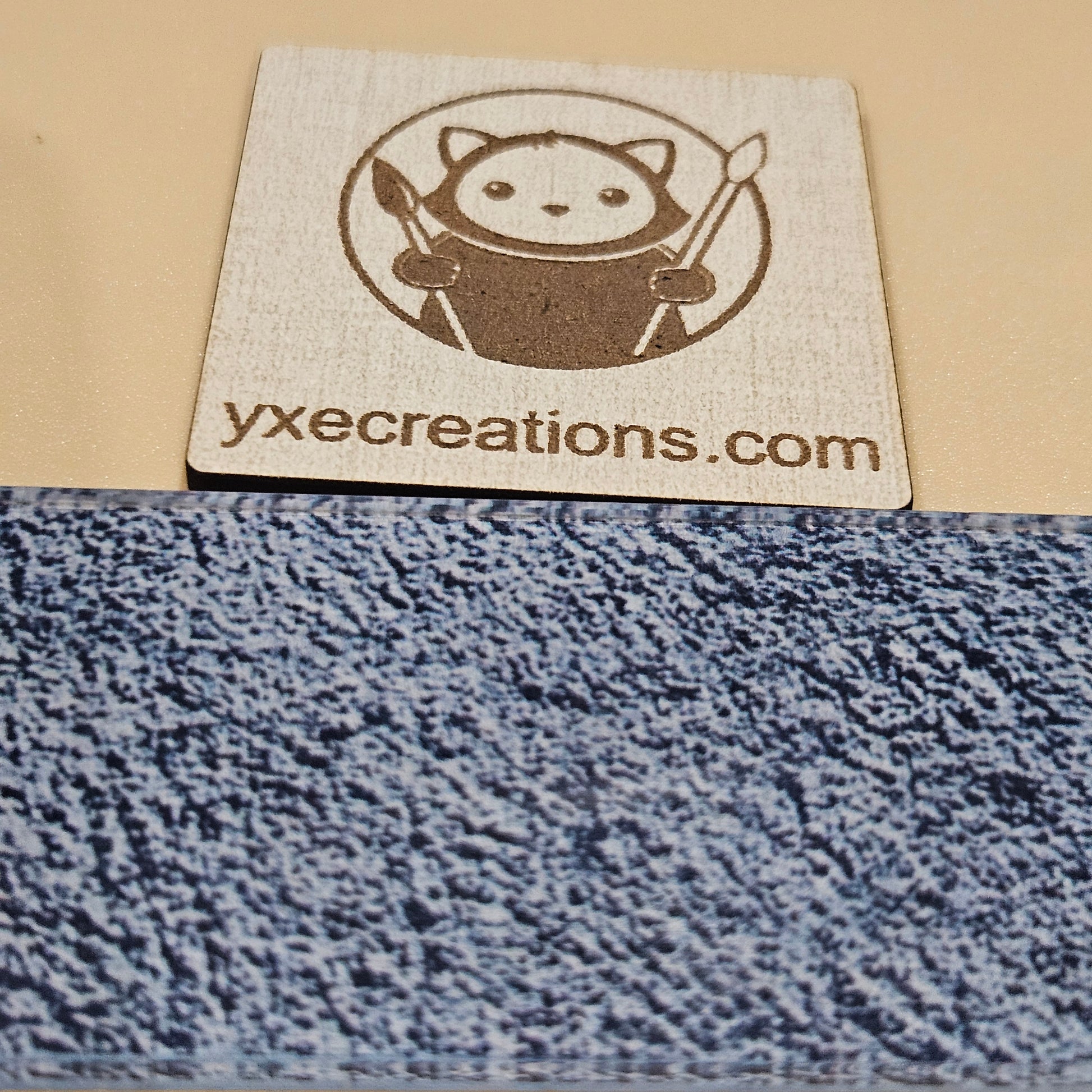 - Default option: Clear acrylic with design printed on the back (glossy clear surface above the pattern)