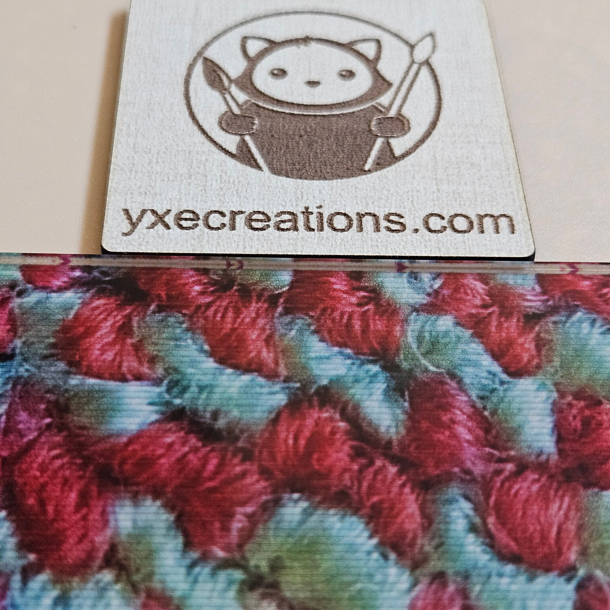 - Default option: Clear acrylic with design printed on the back (glossy clear surface above the pattern)